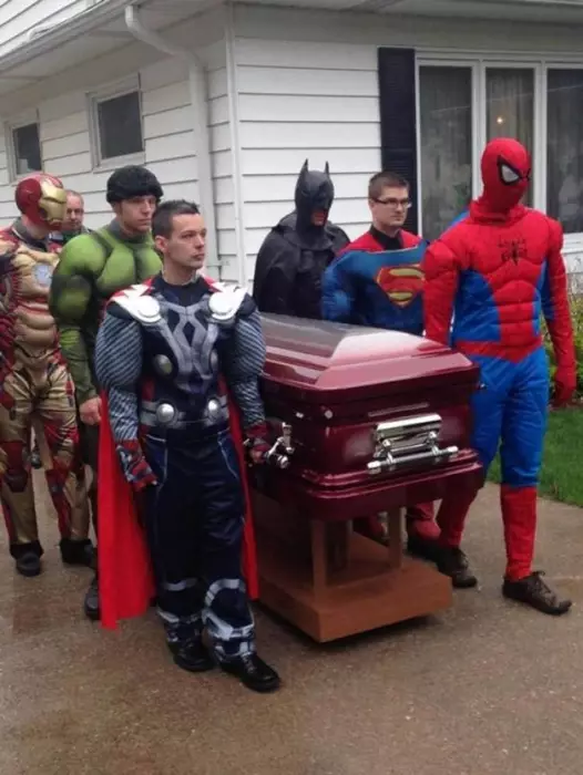 "Это было непросто, но я решила пойти на этот шаг для него. Брэйден был большим поклонником Человека-паука и других супергероев", - заявила мать мальчика. Гроб с телом ребенка несли шесть родственников, одетых в костюмы супергероев. Хоронили его Бэтмен, Человек-паук, Тор, Халк и Железный человек.