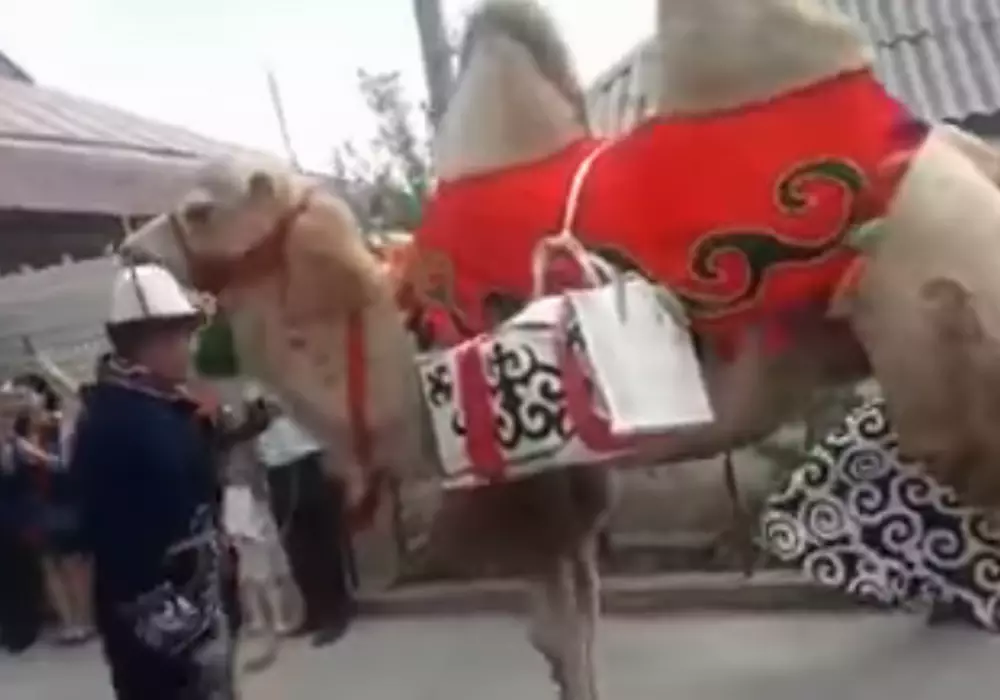 Шымкентская свадьба на верблюдах удивила Казнет Кадр из видео