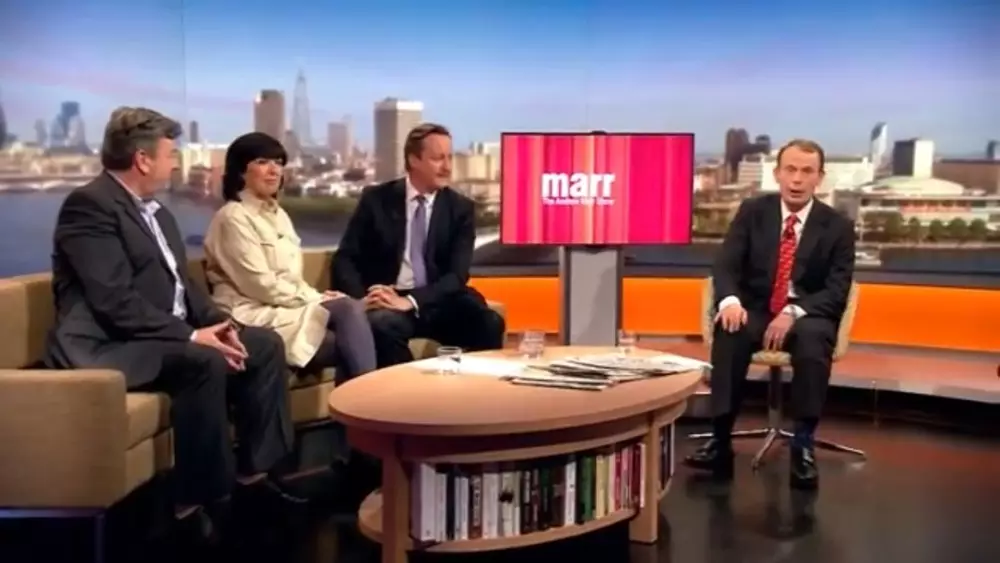 Гости передачи The One Show в прямом эфире обсуждали похищение 200 нигерийских школьниц боевиками радикальной исламистской группировки "Боко Харам". В конце передачи Марр сказал: "Я, я... Премьер-министр, заткнитесь. Мне очень-очень жаль, но мы исчерпали время". В ответ Кэмерон, заикаясь, попросил прощения. "Я затянул, извините", - сказал он.