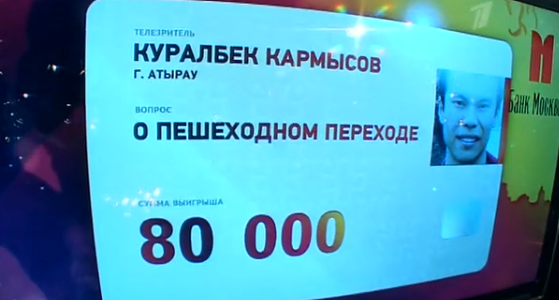 "В тот день прямой эфир не смотрел, так как программу транслировали поздно ночью - с воскресенья на понедельник, а мне утром рано вставать на работу. Даже не подозревал, что озвучат мой вопрос, для меня это полная неожиданность. О своем выигрыше узнал на следующее утро, когда посыпались поздравления со всех сторон", - отметил Куралбек Кармысов.