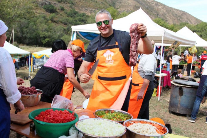 "Мы умеем хорошо работать, заботимся о своем доме и так же отлично отдыхаем", - рассказывает основатель "Технодома" Эдуард Ким, помогая готовить плов.
