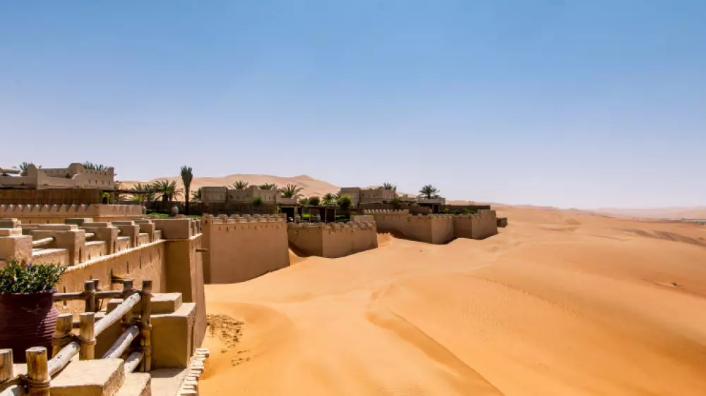 5. Отель Qasr Al Sarab находится в уединенном месте в пустыне Лива, ОАЭ. Он оформлен в стиле пустынного замка, и из него открывается удивительный панорамный вид.