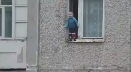 Трехлетний малыш прогулялся по карнизу восьмого этажа © youtube.com/Miass Online