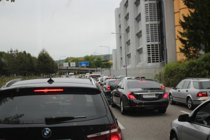 Пробки здесь можно встретить крайне редко и в большинстве случаев только в крупных городах. Чаще всего заторы появляются на улицах Цюриха или при въезде в сам город. Местные жители предпочитают пользоваться поездами или же передвигаться на велосипедах и мопедах. Но, как говорят сами швейцарцы, пробок у них нет.