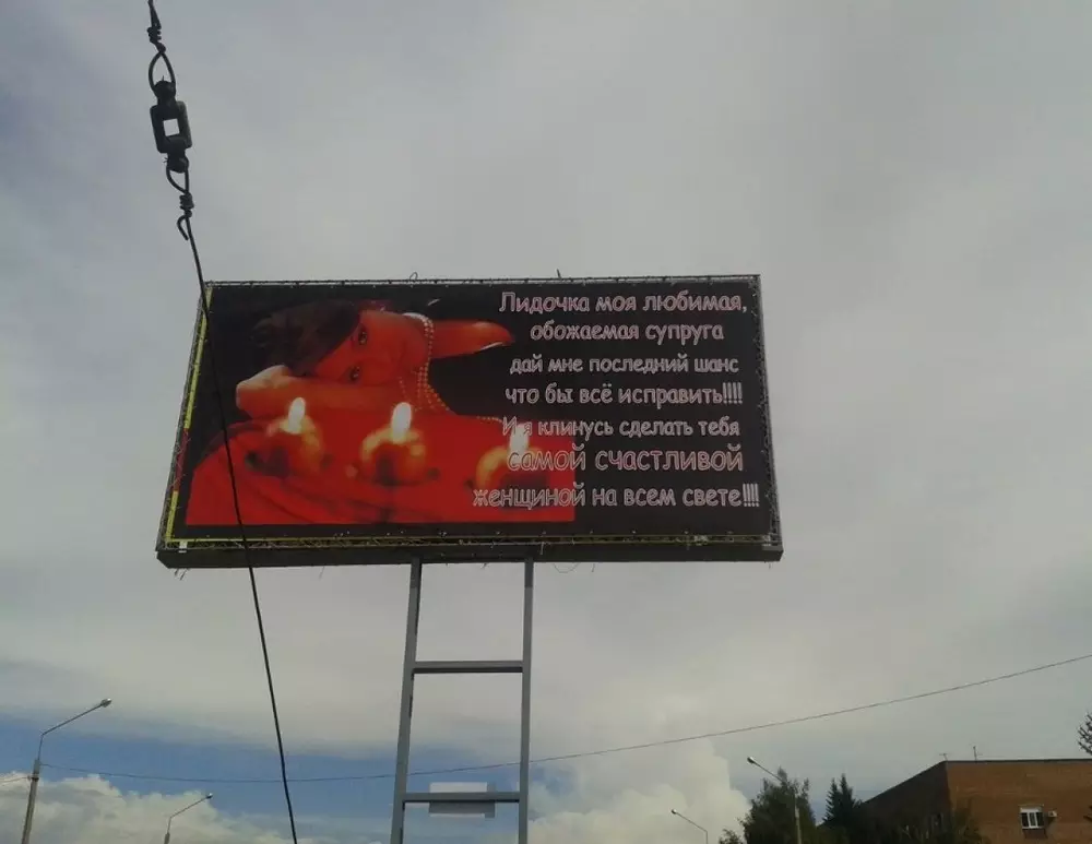 В четверг в Усть-Каменогорске на пересечении улицы Ворошилова и проспекта Абая появился билборд с извинениями неизвестного мужчины перед супругой Лидой. На баннере изображена симпатичная женщина, а рядом надпись с большим количеством орфографических и пунктуационных ошибок, сообщает портал YK-news.kz.