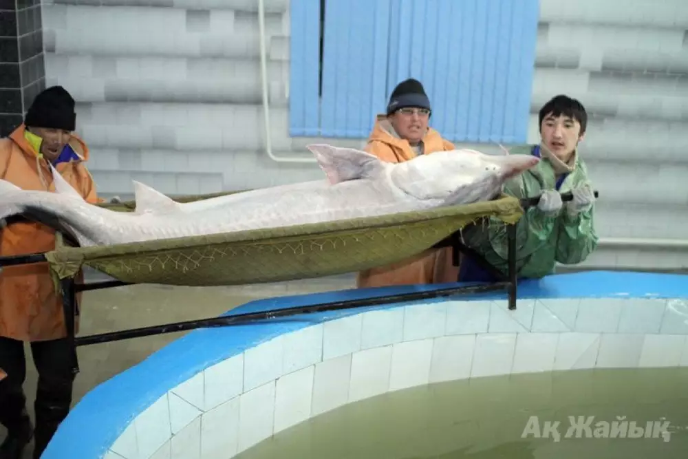 "Эта белуга скромнее по размеру, чем прошлогодняя, зато моложе, и это лучше для воспроизводства. Кроме того, при таком весе больше вероятности получить половой продукт прижизненным путем. Мы постараемся усыпить рыбу и "выдоить" ее, если, конечно, у нее нет травм", - сообщила главный рыбовод осетрового завода Майра Зулкашева.