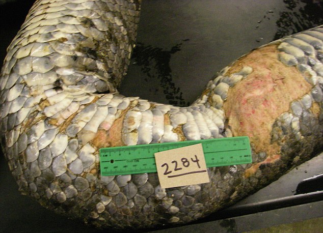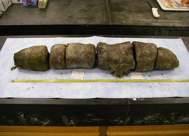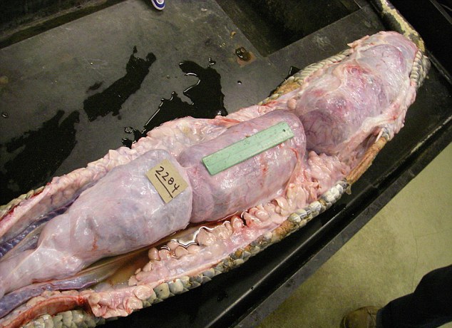 В брюхе рептилии ученые нашли более 14 фунтов (шести килограммов) экскрементов, содержащих непереваренные останки оленей - шерсть, кости, зубы и копыта.