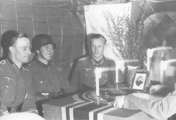 Немецкие солдаты празднуют Рождество, Центральный фронт, 1942 год.