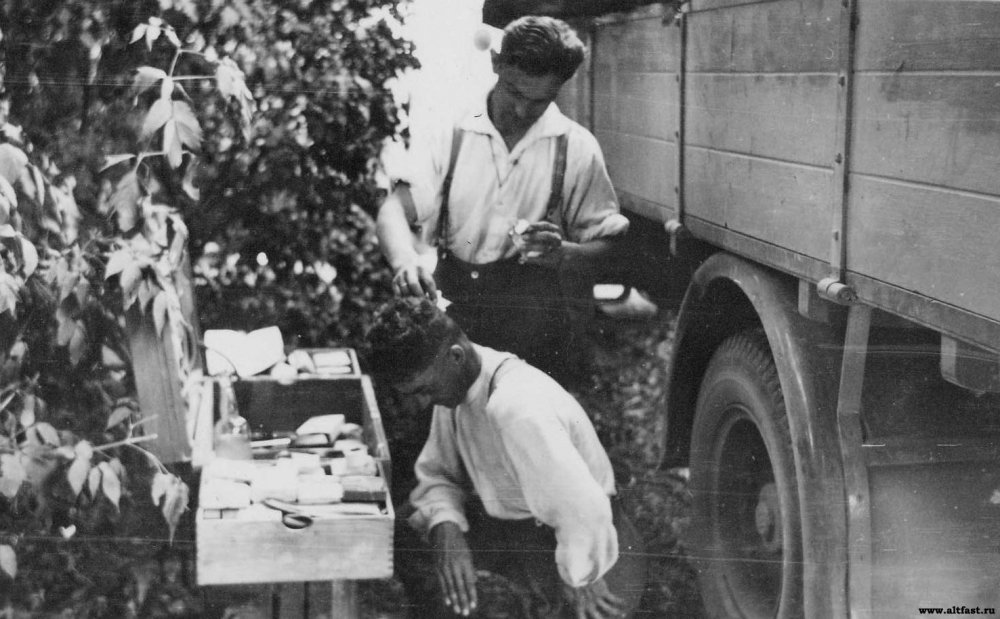 Стрижка и бритье бойцов немецкой армии.