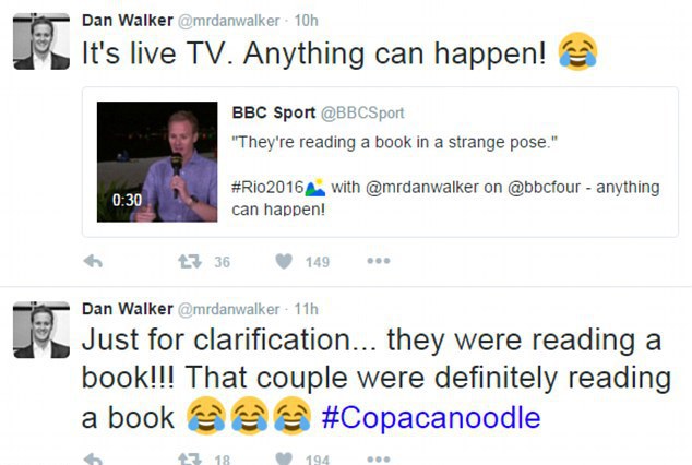 Речь репортера прервала парочка, которая, по всей видимости, занималась сексом на пляже прямо позади журналиста. Сначала телеведущий пытался подавить приступы смеха, а потом прокомментировал событие. "Для тех, кто спрашивает, что происходит позади меня: мы не будем приближать изображение, но это не то, о чем вы подумали. Это просто объятия. Они, кажется, читают книгу. Читают книгу в странной позе", - заявил Уокер.