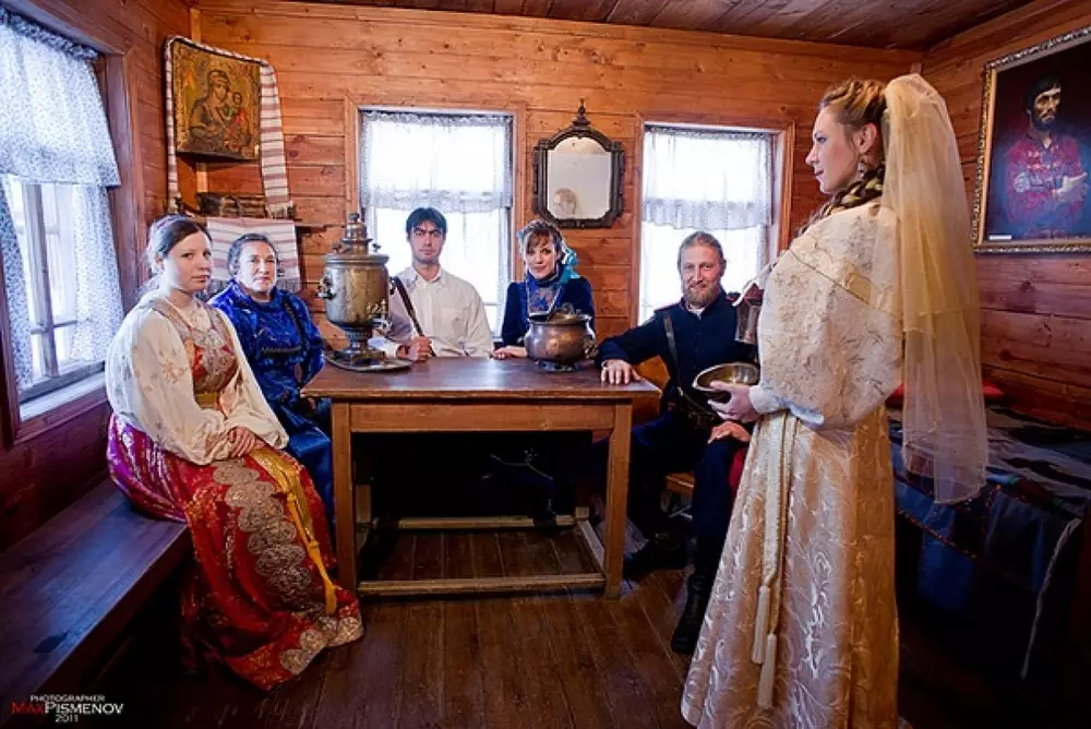 После загса молодожены заехали в музей "Старый Уральск". Там молодоженов встретил казачий хор "Михайлов день". Здесь же случайным свидетелем церемонии стал иностранец, заглянувший в музей. "Он сначала никак не мог понять, что происходит, но со второй гостевой рюмкой понимание пришло само собой", - говорит Ирина.