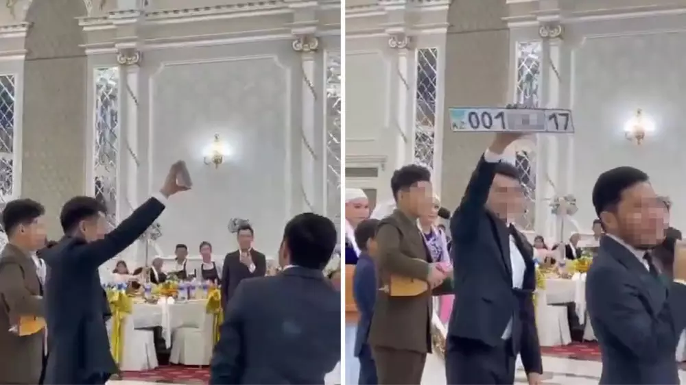 VIP-госномер подарили молодоженам на тое в Шымкенте Кадры из видео