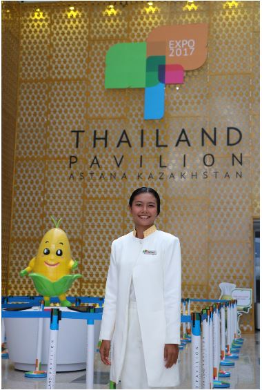 "Перед входом в павильон гости могут участвовать в розыгрышах уникальных биосумок, узнать много интересных фактов о Таиланде и стать ближе к культуре тайцев. Внутри павильона гостей знакомят с маскотом - кукурузой Палангом. Во втором выставочном зале наши гости приходят в восторг от 3D-шоу, которое было подготовлено нашими тайскими коллегами. А в третьем зале культура и технологические возможности Таиланда перемешиваются и дают уникальную атмосферу", - рассказывает волонтер павильона Нурсултан Ильяс. Он также считает, что павильон Таиланда с технической точки зрения - один из самых прорывных объектов EXPO