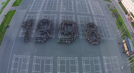 Таким оригинальным флешмобом они решили поздравить всех казахстанцев с Днем столицы. 550 военнослужащих по команде выстроились в цифру "1998", создав копию фирменного логотипа Дня столицы. Это стилизованный рисунок - сочетание цифры "1998" (год образования столицы) и исторического образа древа поколений.