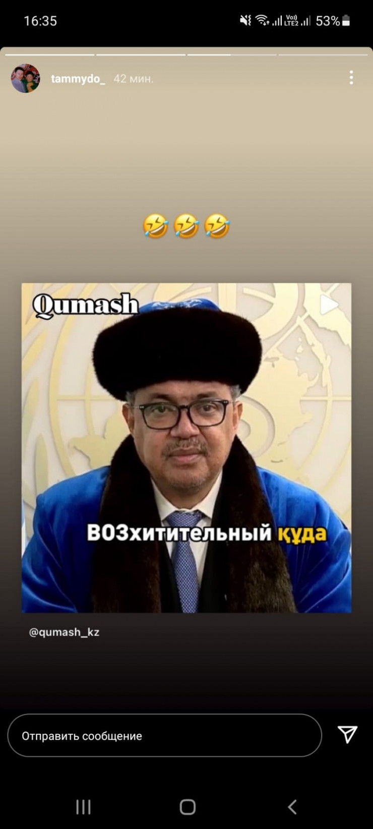 "ВОЗхитительный құда". Қазақ ақынымен құдаласқан ДДСҰ басшысы туралы Қазнет қалай әзілдеп жатыр?