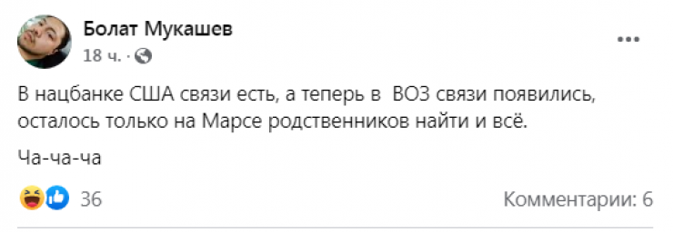 Facebook қолданушысы Тедрос Адханом Гебрейесустің құда екенін пайдаланып, Қазақстанға Pfizer вакцинасын көбірек жеткізу керек деп әзілдеген.