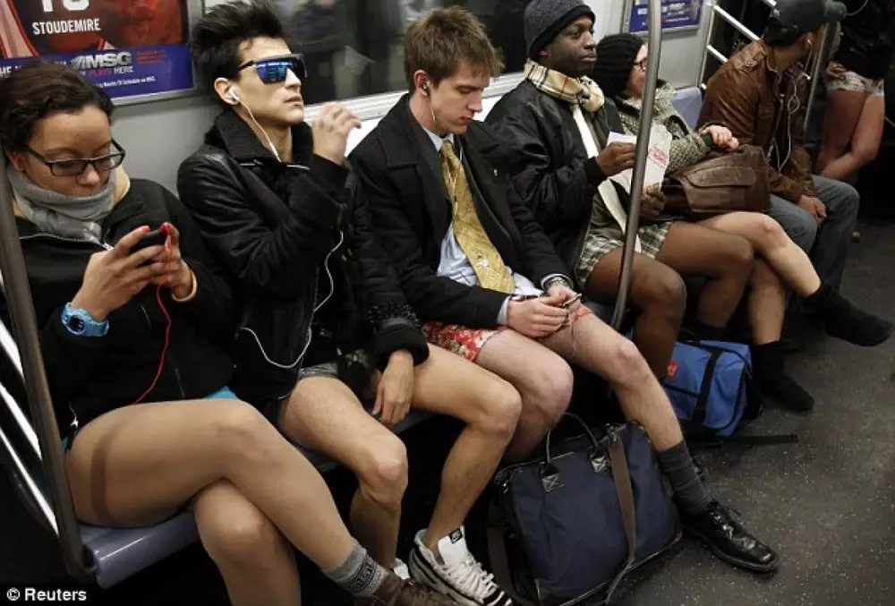 Вот уже несколько лет группа активистов под названием Improv Everywhere устраивает всемирную акцию под названием "В метро без штанов". В этом году флешмоб состоялся в воскресенье 8 января, проехаться в общественном транспорте без брюк и юбок могли жители 60 городов мира.