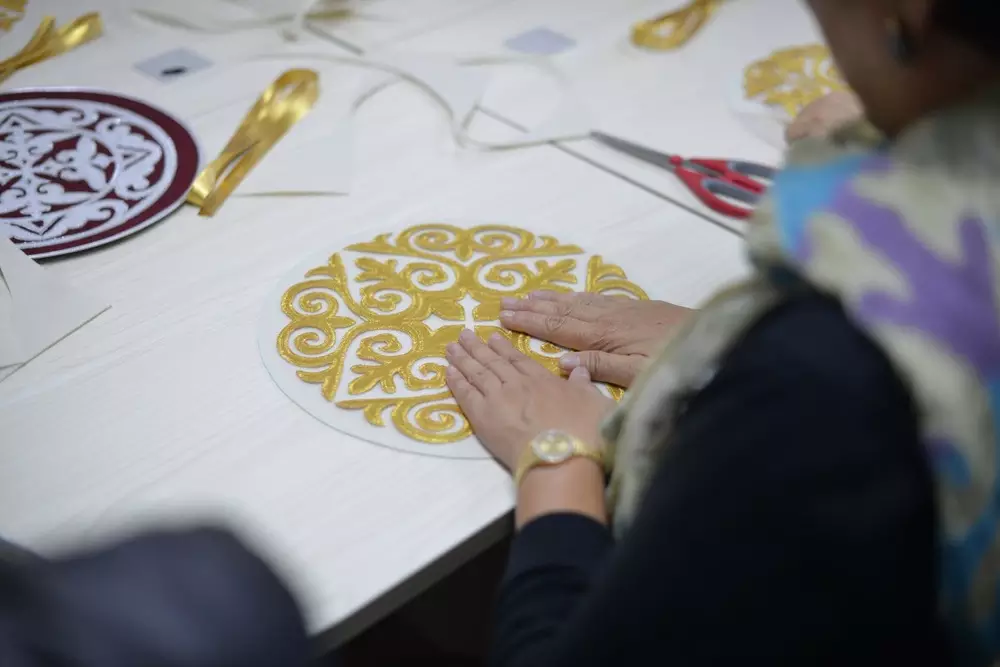 Супругам зарубежных дипломатов в Казахстане преподали мастер-класс по пошиву специальной подставки в национальном стиле, передает Tengrinews.kz.