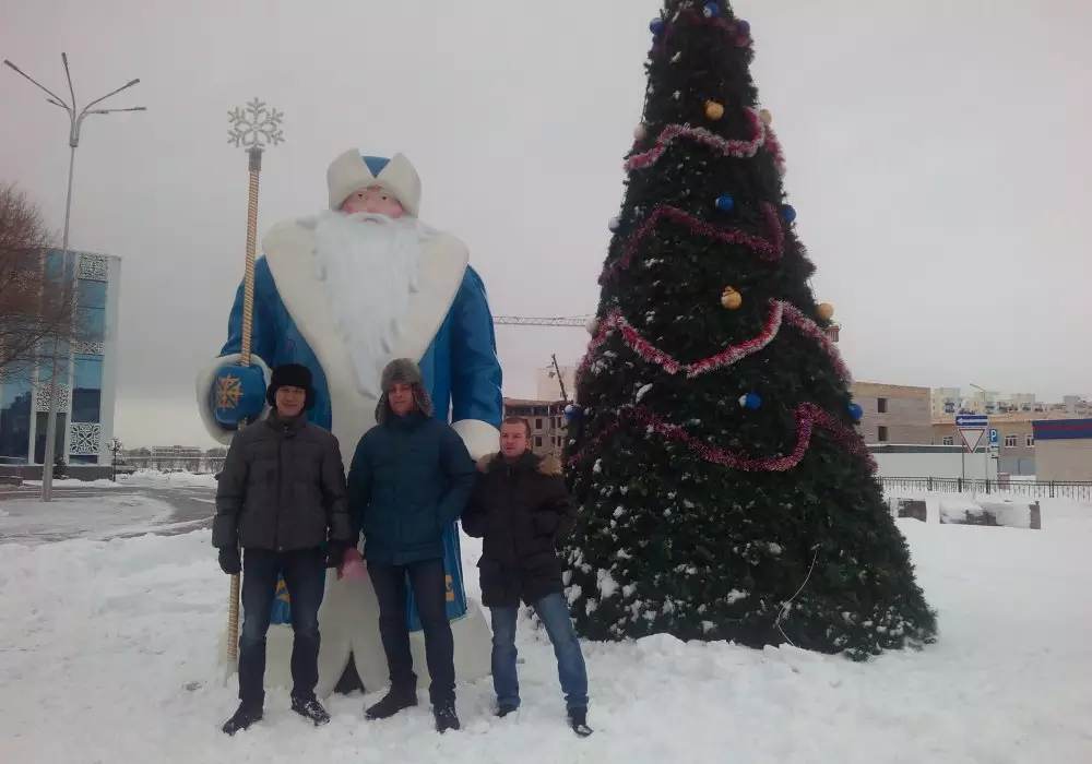 Сегодня скульптуру установили перед недавно открывшимся Домом дружбы на Юго-Востоке Караганды. Дед Мороз со светящимся посохом поставили около елки. Авторы конструкции тщательно вытерли каждый сантиметр своего "детища" и даже поверили скульптуру на прочность, встав на руки сказочного персонажа.