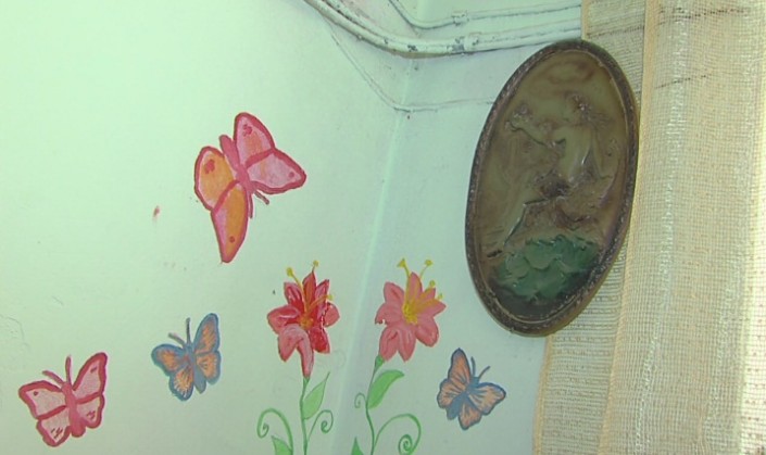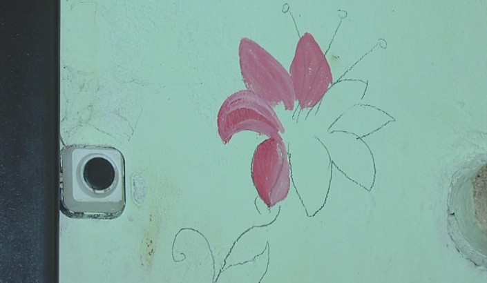 Другой жительнице города Полине Мелехиной нравится превращать стены подъезда в весну. В доме летают бабочки и распускаются первые цветы. Попросили девушку разукрасить подъезд соседи. Но выполнить их пожелание удалось только через год, после рождения ребенка.