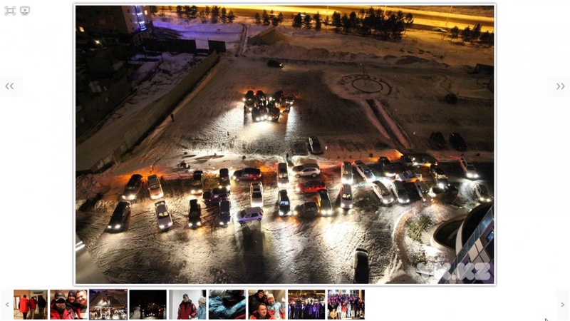 Вечером 26 января на площадке перед зданием ТОО "Лик" собрались 40 машин и полсотни человек. Чтобы выстроить автомобили в нужном порядке ушло два часа.