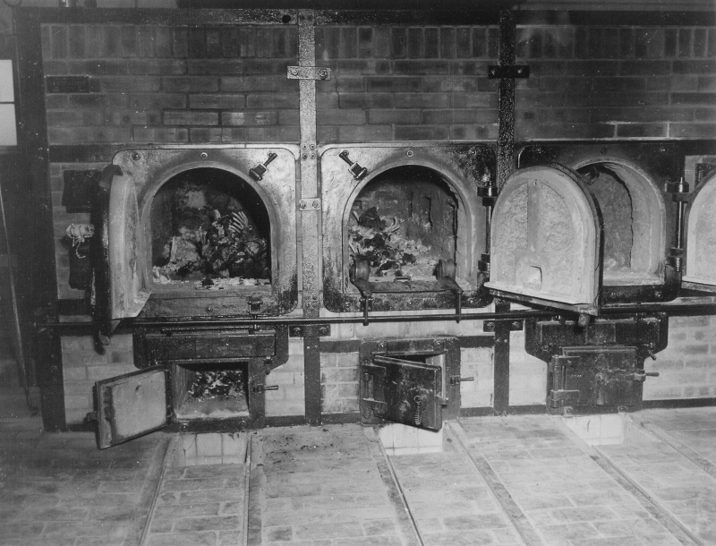 Человеческие останки в печи крематория концлагеря Штутгоф. Место съемки: окрестности Данцига (ныне Гданьск, Польша).