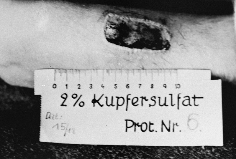 На руке жертвы глубокий ожог от фосфора. Эксперимент заключался в том, чтобы поджечь на коже живого человека смесь фосфора и каучука.