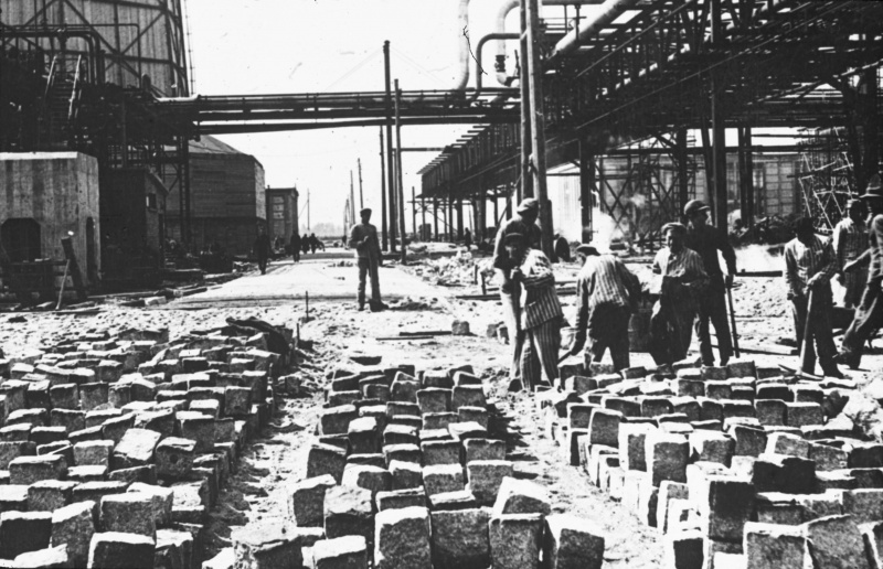 Заключенные концлагеря Освенцим-Моновиц на строительстве химического завода немецкого концерна I.G. Farbenindustrie AG