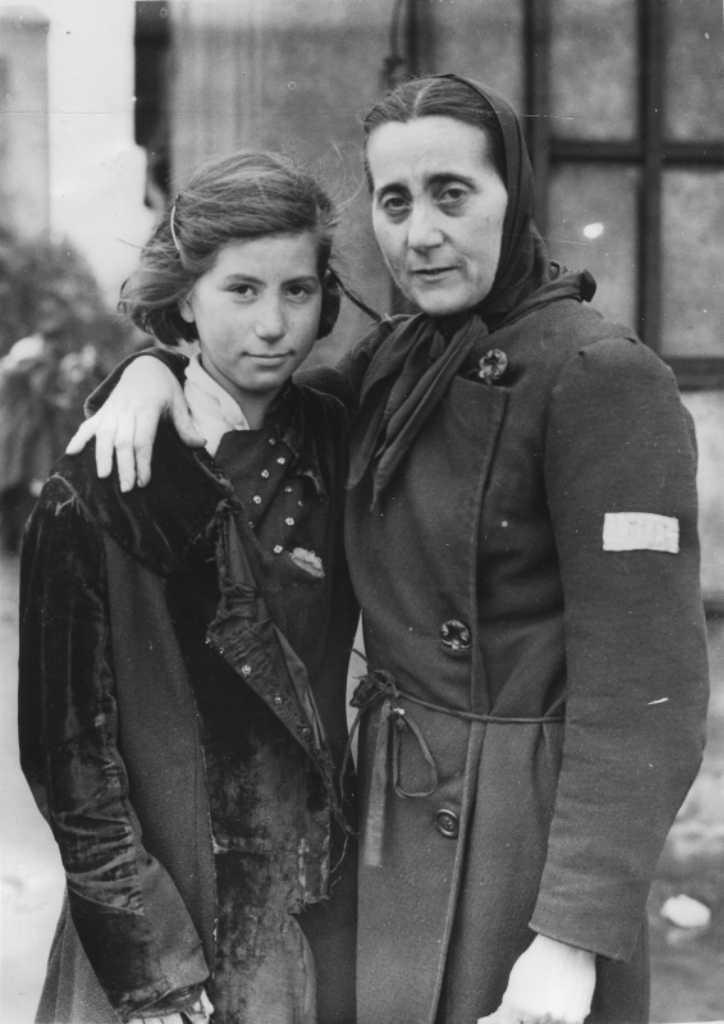 Еврейская женщина с дочерью после освобождения из немецкого исправительно-трудового лагеря.