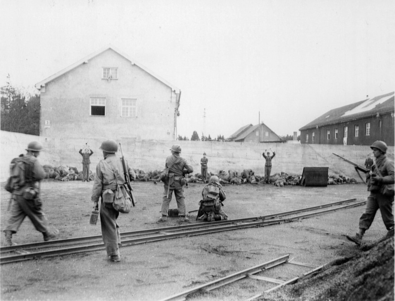 Солдаты из 157-го американского пехотного полка расстреливают эсэсовцев из охраны немецкого концлагеря Дахау.