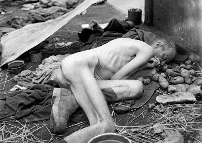 Истощенная венгерская узница, освобожденная из концлагеря Берген-Бельзен.