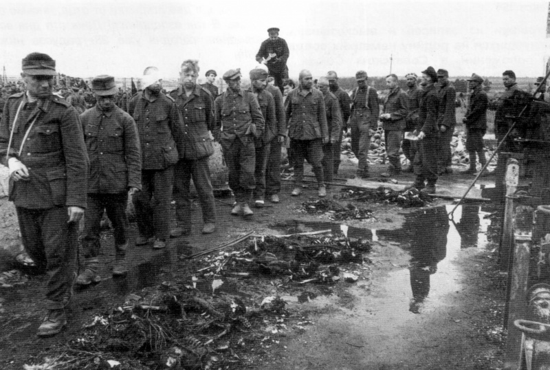 Погибшие от голода и холода пленные красноармейцы. Лагерь для военнопленных находился в селе Большая Россошка под Сталинградом.