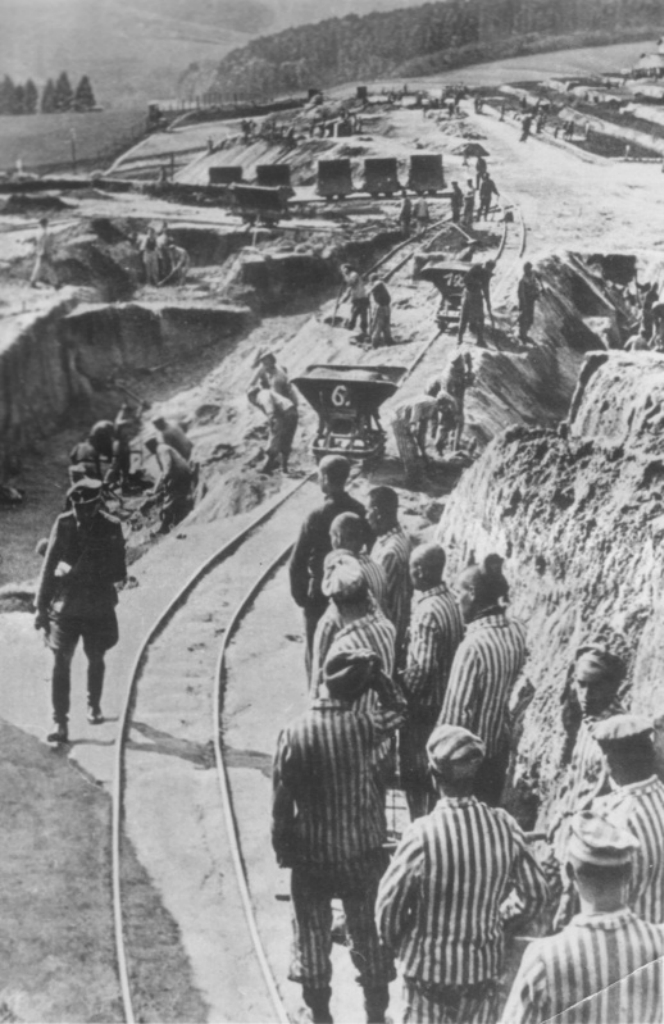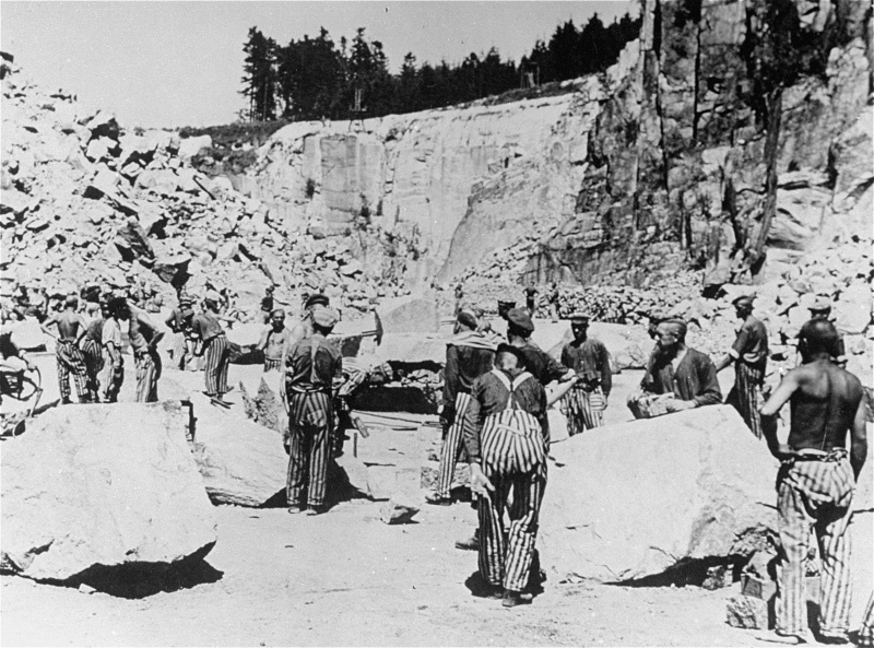 Заключенные на принудительных работах. Карьер "Вайнер Грабен" в концентрационном лагере Маутхаузен, Австрия.
