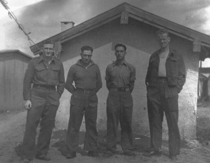 Пленный британский капрал Эрик Эванс (Eric Evans) с тремя товарищами на территории концентрационного лагеря "Шталаг XVIIIA".