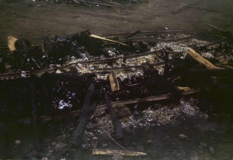 Человеческие останки в печи крематория концлагеря Штутгоф. Место съемки: окрестности Данцига (ныне Гданьск, Польша).