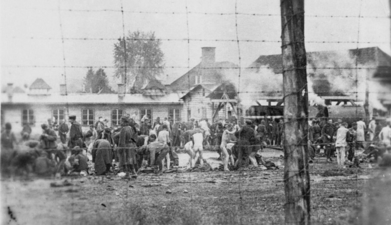 Советские военнопленные проходят дезинфекцию в немецком лагере для военнопленных Цайтхайн.