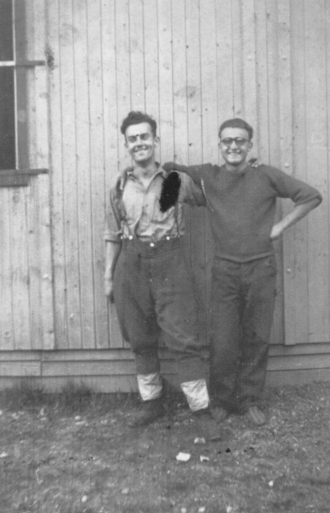 Двое британских пленных у стены барака концлагеря "Шталаг 383".