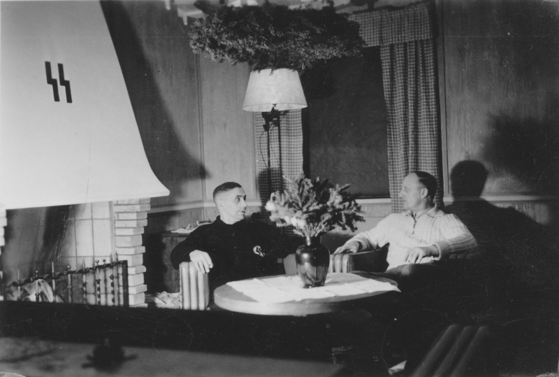 Комендант норвежского концлагеря Фальстад (Falstad) гауптшарфюрер СС Карл Денк (Karl Denk, слева) и обершарфюрер СС Эрих Вебер (Erich Weber, справа) в комендантском помещении.