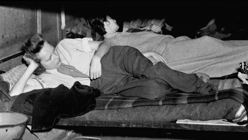 Участницы варшавского восстания из состава Армии Крайовой в бараке концлагеря в районе немецкой деревни Оберланген.