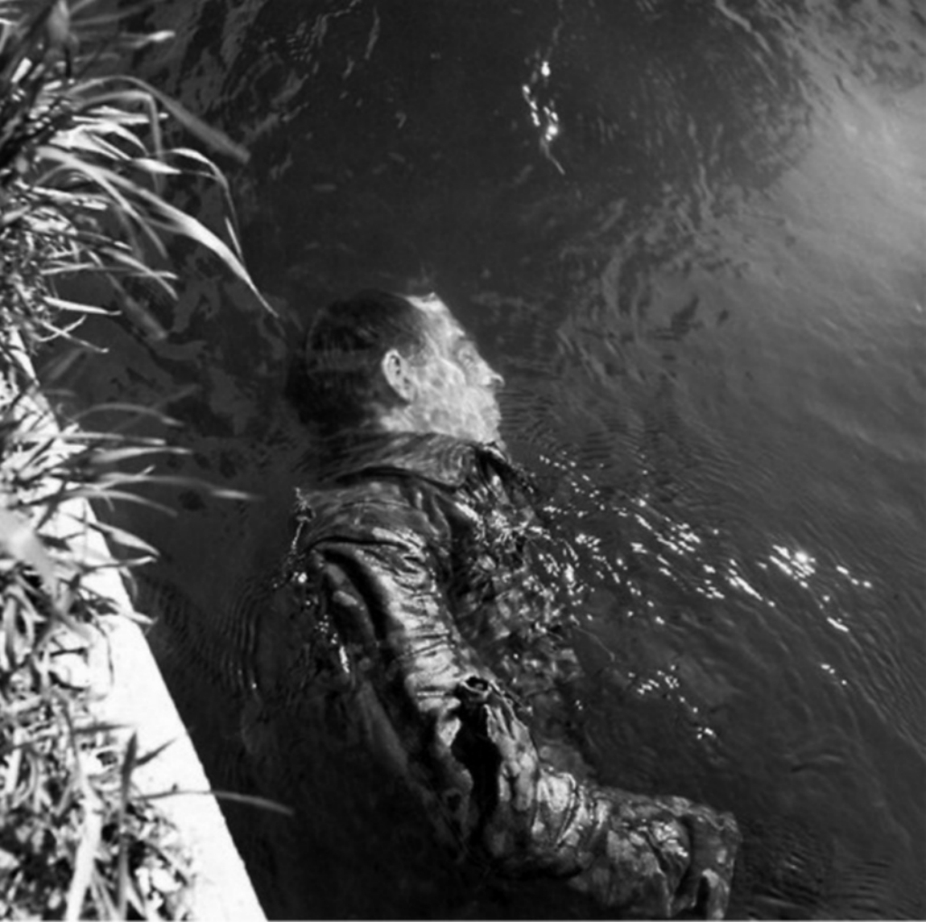 Тело расстрелянного охранника СС в канале у концлагеря Дахау.