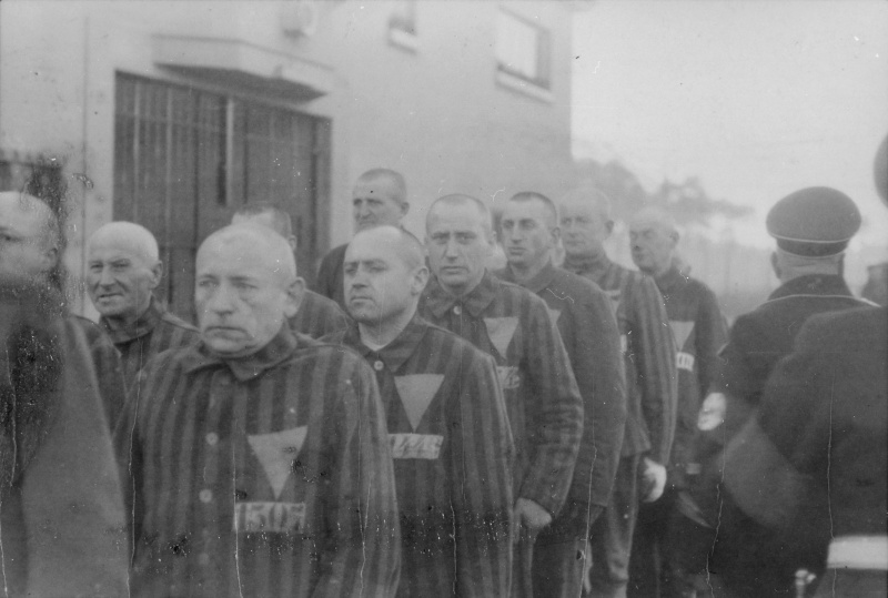 Заключенные концентрационного лагеря Заксенгаузен (Sachsenhausen) на построении.