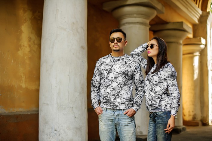 Свитшоты выполнены из натурального хлопка, который дизайнер специально заказывала за границей. Они созданы в ограниченном количестве, цена такого свитшота - 25 тысяч тенге.