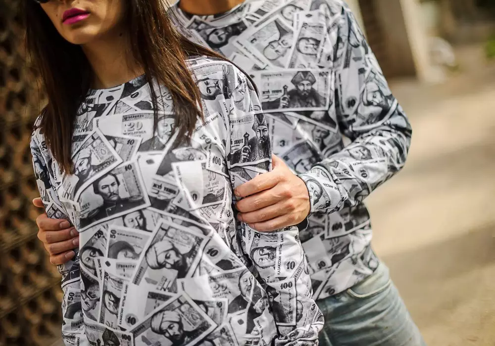 После серии патриотических принтов с изображением природы Казахстана и архитектуры разных городов, Камила Курбани решила также изобразить национальную валюту образца 1993 года. "Именно на наших старых тенге изображены наши герои - Абылай хан, Курмангазы, Аль-Фараби, Абай Кунанбаев - поэтому хотелось сохранить патриотизм, чтобы молодое поколение не забывало", - поделилась дизайнер.