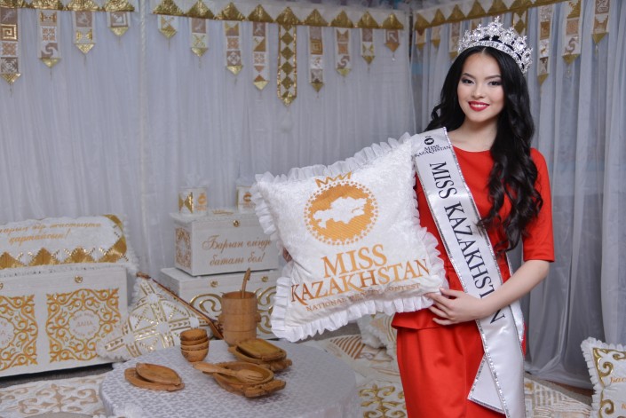 "Мисс Казахстан-2015" Алия Мергембаева из Актау получила в подарок кроме денежного приза традиционное казахское приданое от Дома авторского дизайна "Алтын Орда", сообщает корреспондент Tengrinews.kz.