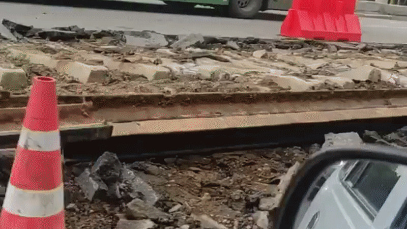 Трамвайные пути выкапывают на улице Толе би в Алматы