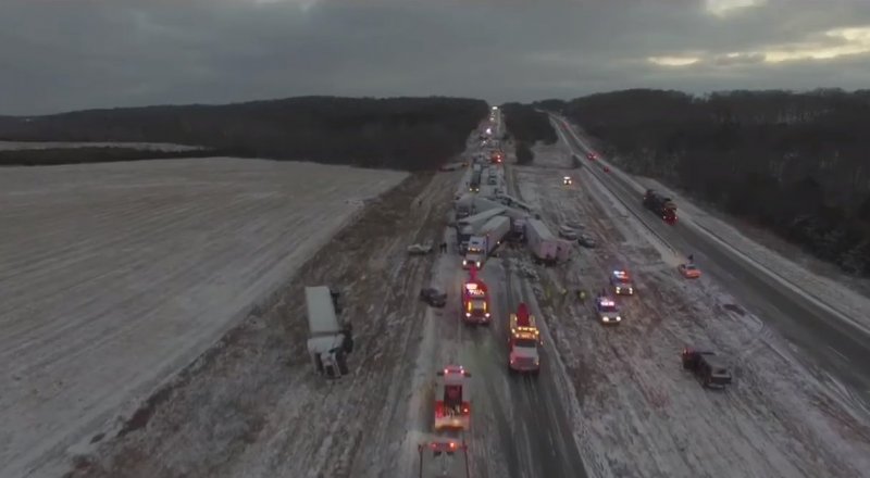 На обледеневшем шоссе в штате Миссури столкнулись свыше сотни автомобилей, пишет The Washington Post.