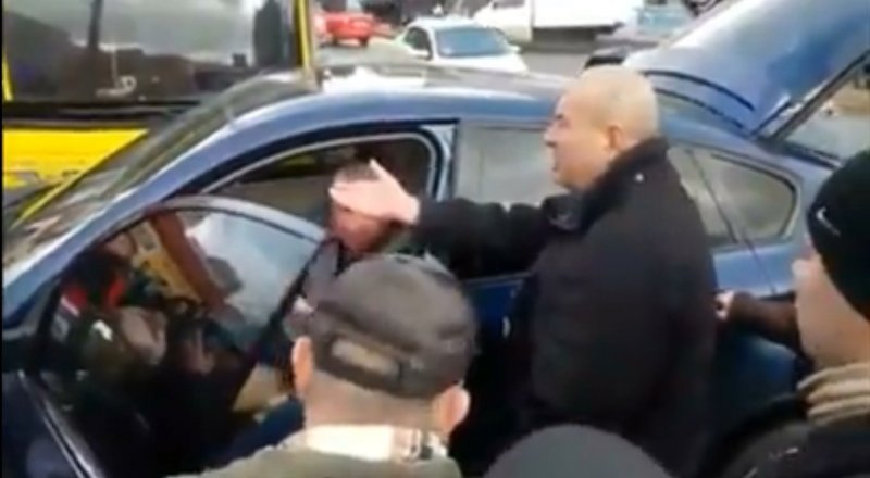 Жители Киева напали на водителя, который припарковал автомобиль посреди дороги и отправился в супермаркет. Видео случившегося