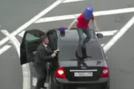 Напавшего на машину спецслужб активиста с синим ведерком задержали