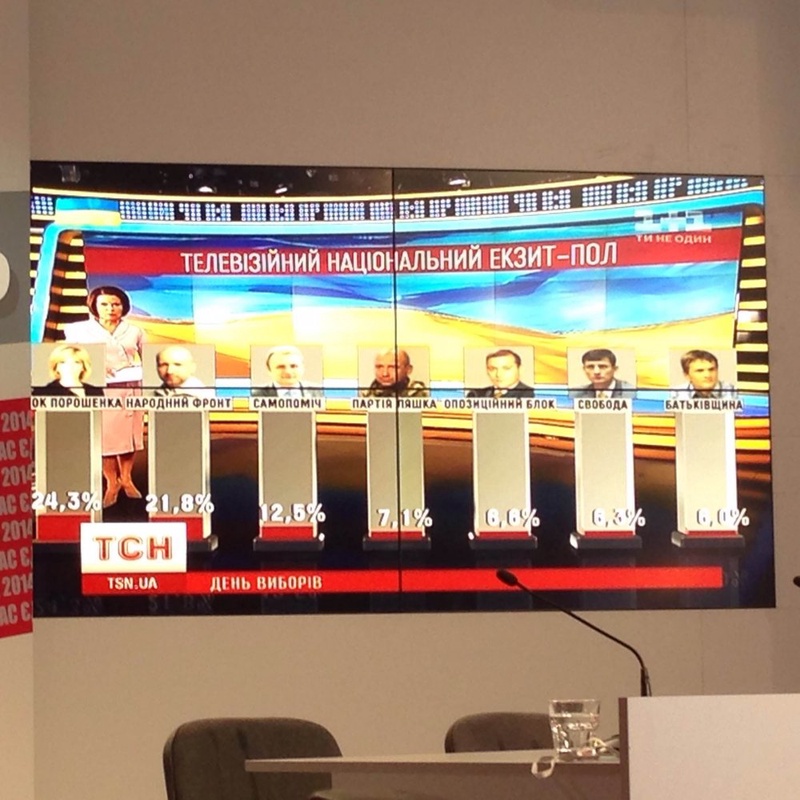 Выборы на Украине: После обработки половины голосов лидирует партия Яценюка "Народный фронт" во главе с премьер-министром Украины Арсением Яценюком набрал 21,6 процента голосов.