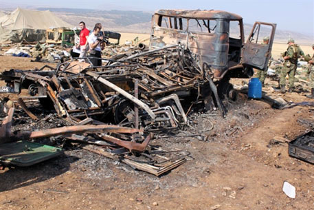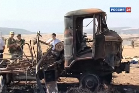 Теракт под Буйнакском совершили двое смертников В автомобиле ВАЗ-21014, взорвавшемся на территории полевого лагеря, находились два человека. Ранее сообщалось об одном нападавшем.